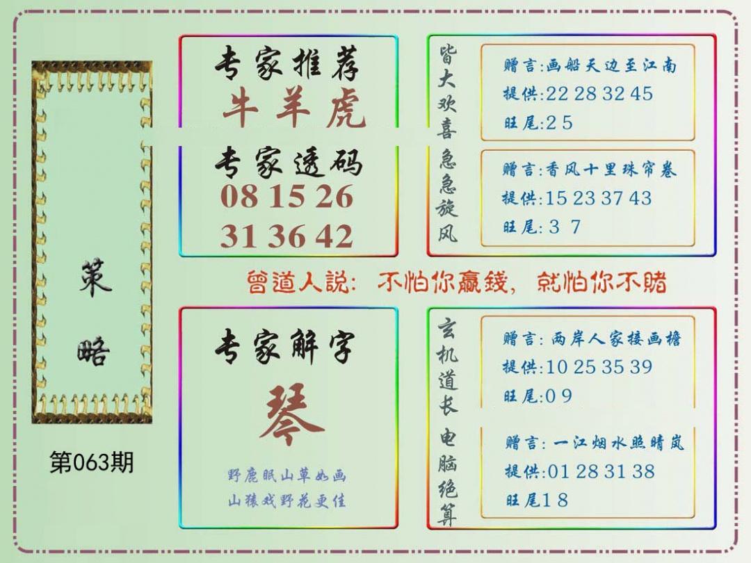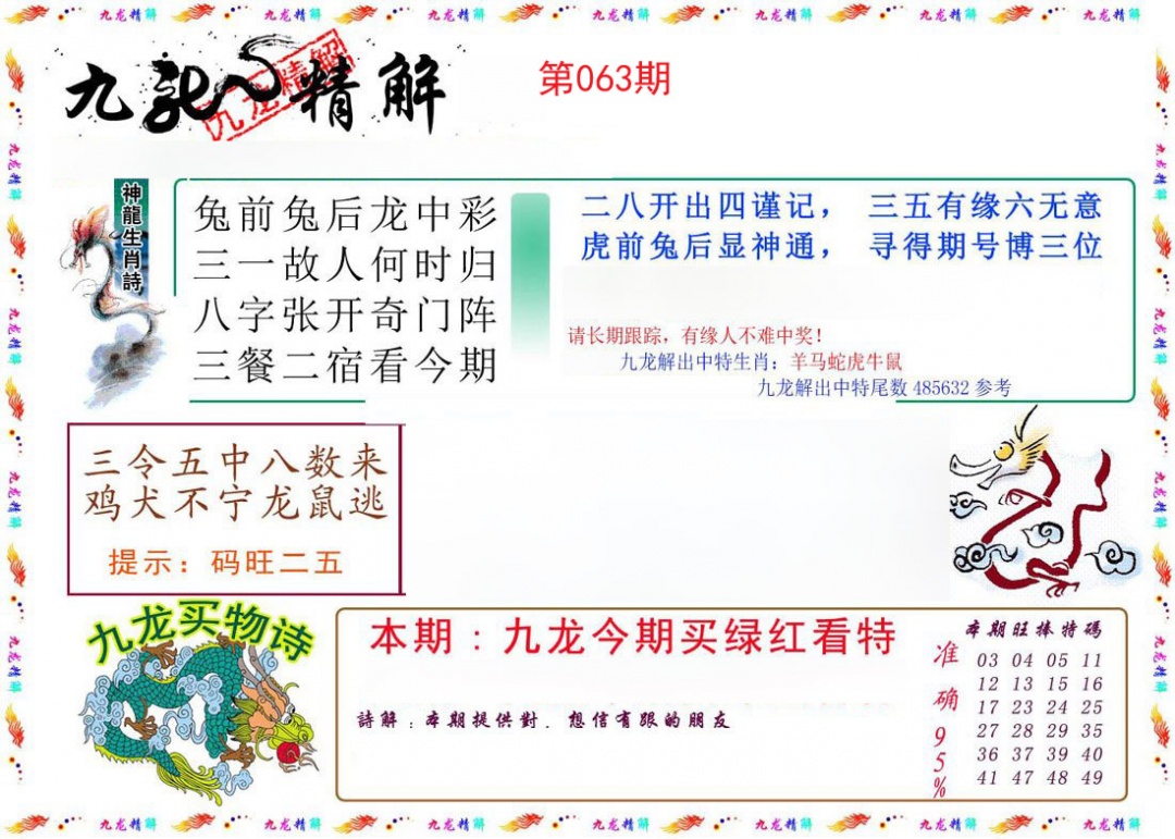 | 060期【龙蛇猴虎鼠兔】开: 羊 48 |